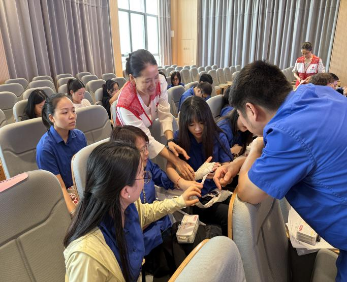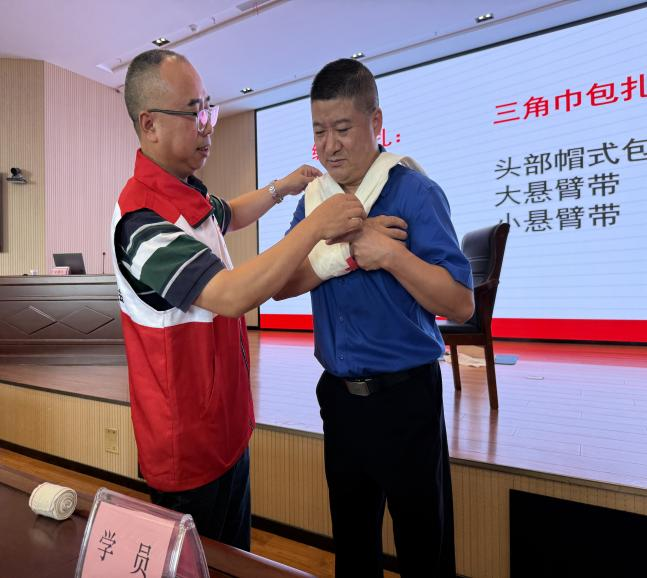 本次培訓內容豐富實用,既涵蓋國際紅十字運動基本知識、救護新概論等理論內容,又聚焦現代救護技術開展實操訓練。培訓中,講師系統講解心肺復蘇與AED操作技能,通過現場演示、手把手指導,幫助參訓人員熟練掌握這一關鍵生命救護技術;在創(chuàng)傷救護環(huán)節(jié),不僅細致講解止血、包扎、骨折固定等基礎方法,還針對氣道異物梗阻、燒燙傷、踝關節(jié)扭傷等常見意外傷害的現場處理展開深入教學。